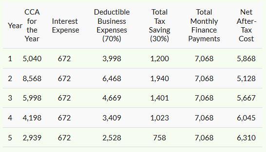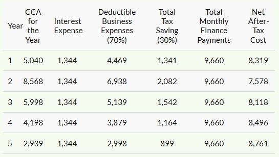 Finance的车子,属于购买,所以每年报税的时候,车子的折旧 (Capital Cost Allowance – CCA)以及利息费用都可以抵扣自雇收入。