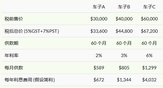 老王现在需要换车了,以下是车行给他三个车子的Finance报价,其中车子C为符合规定的零排放环保车(Zero-Emission Vehicle):