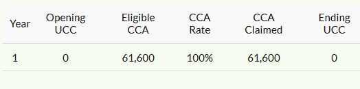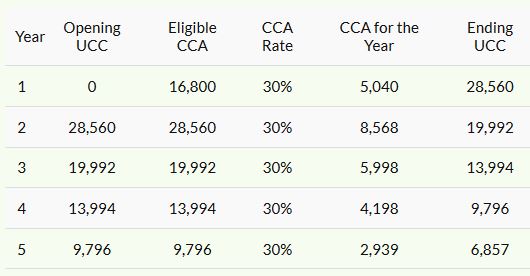 因为车子A的税前价格为$30,000,所以它的CCA CLASS为10,CCA RATE也就是折旧率为每年30%。